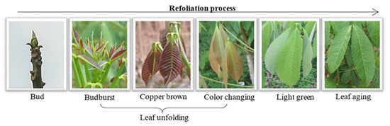 Phenology refers to the study of the recurring stages of plant and animal life [1]. Vegetation phenology studies specific plant life cycle events such as bud burst, canopy growth, flowering, and senescence, and their relation to environmental factors. Phenology is a robust ecological indicator of climate change [2,3] and environmental variation impacts, across individual species to entire landscapes [4]. Most phenological events are receptive to temperature, rainfall, and human activities that affect vegetation growth and functions. For example, previous studies have linked shifts in rainfall and temperature to delayed leaf senescence and abscission in rubber trees [5], earlier start of the growing season across species in Ethiopia [6], advances in leaf unfolding of several woody species [7], and reduced litter components in three Acacia species [8]. Thus, phenology facilitates an improved understanding of the interactions among biotic and abiotic factors that impact life on Earth.