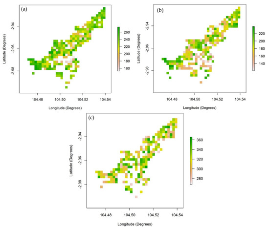 Rainfall and temperature data from 2010 to 2019 were used in this study. Hourly temperature and rainfall were retrieved from the weather station located within the study area at 2°55′38.2″S and 104°32′20.0″E. We processed and calculated the average daily temperature and cumulative rainfall for all years. The average temperatures were computed for daily, monthly, and yearly periods from the maximum and minimum temperatures recorded. The same process was conducted on rainfall data, only that rainfall data were represented by an accumulation of the rainfall recorded. The monthly average temperature and rainfall accumulation was used for the climatic data test.