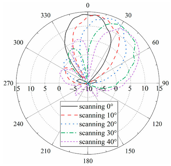 where is the radiation pattern of antenna element, its and components are determined by Equations (7) and (8). In addition, the specific values of the phase difference between adjacent antenna elements are as follows [38]: