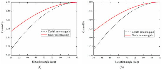 According to Equations (5) and (6), the gain of the receiving antenna is proportional to SNR of the direct and reflected signal received by GNSS-R satellite. Therefore, the SNR of these signals can be promoted by increasing the gain of the GNSS-R zenith and nadir antenna. In the cGNSS-R system which adopting the TEA method, the element antenna’s aperture electric field components for and direction can be expressed as [37]:
