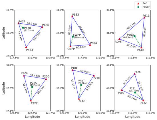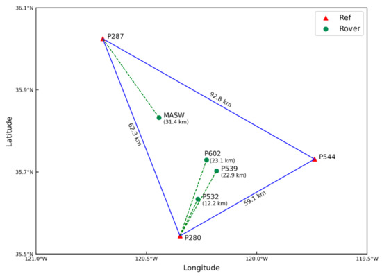 - Han, S.; Rizos, C. GPS network design and error mitigation for real-time continuous array monitoring systems. In Proceedings of the 9th International Technical Meeting of the Satellite Division of The Institute of Navigation (ION GPS 1996), Kansas City, MO, USA, 17–20 September 1996. [Google Scholar]
