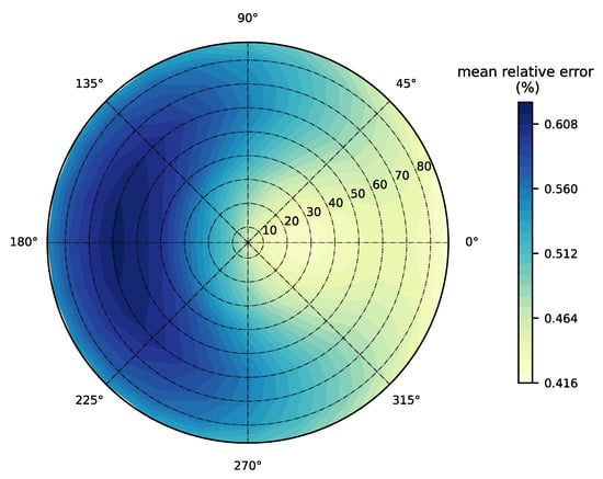 | Solar zenith angle | 0–80 | degrees | 10 degree intervals | |