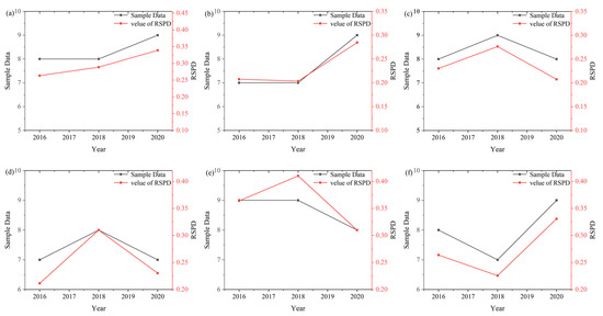 In addition, three sample points were selected in Case I and Case II, respectively. By comparing the 2016–2020 RSPD results with the time variation trend of the sample data, the performance of the RSPD was also evaluated from the time trend. The time variation results are shown in Figure 11, which indicates that the RSPD and sample data have basically the same changing trend in time series.