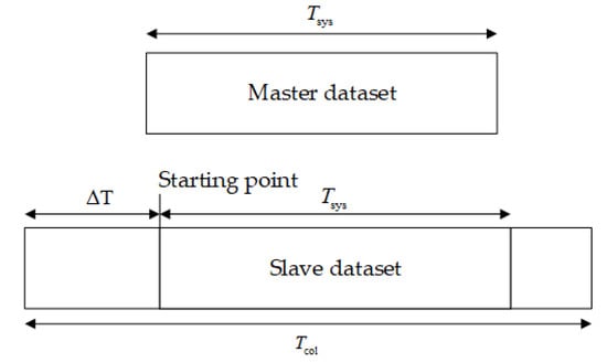 For the best spatial correlation of the timing charts, data needed to be collected in the repeat-pass period of the navigation satellite to reduce the impact of spatial decoherence. In general, repeat-pass data acquisition takes slightly longer to ensure a valid data length, as shown in Figure 4, where is the synthetic aperture time, is the collection time, and is the time offset.