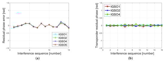 The residual phase error of the transponder: (a) the result of the previous experiment; (b) the result of the proposed experiment.