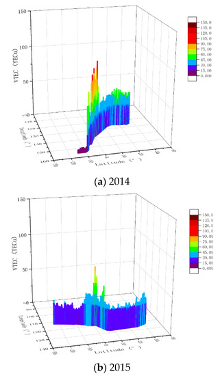 3.2. Analysis of Spatiotemporal Characteristics of Kinematic Ionospheric TEC