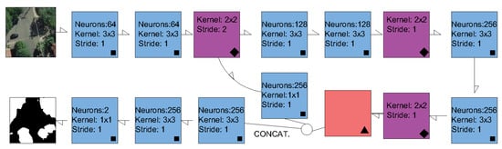 - Badrinarayanan, V.; Kendall, A.; Cipolla, R. SegNet: A Deep Convolutional Encoder-Decoder Architecture for Image Segmentation. IEEE Trans. Pattern Anal. Mach. Intell. 2017, 39, 2481–2495. [Google Scholar] [CrossRef]