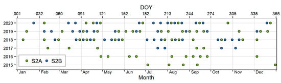 - Ranghetti, L.; Boschetti, M.; Nutini, F.; Busetto, L. “sen2r”: An R toolbox for automatically downloading and preprocessing Sentinel-2 satellite data. Comput. Geosci. 2020, 139, 104473. [Google Scholar] [CrossRef]