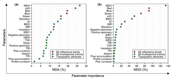- Han, H.; Guo, X.; Yu, H. Variable selection using mean decrease accuracy and mean decrease gini based on random forest. In Proceedings of the 2016 7th IEEE International Conference on Software Engineering and Service Science (ICSESS), Beijing, China, 8 August 2016; pp. 219–224, ISBN 978-1-4673-9904-3. [Google Scholar]