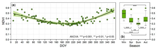 - Burgheimer, J.; Wilske, B.; Maseyk, K.; Karnieli, A.; Zaady, E.; Yakir, D.; Kesselmeier, J. Relationships between Normalized Difference Vegetation Index (NDVI) and carbon fluxes of biologic soil crusts assessed by ground measurements. J. Arid. Environ. 2006, 64, 651–669. [Google Scholar] [CrossRef]