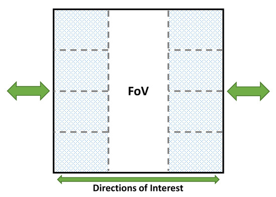 One advantage of utilizing the LMB filter in our use case is that the area of possible birth points is known and limited. The possible target’s birth points of the multi-Bernoulli filter lie within the trackable regions on both sides. Moreover, there is a minimum distance between two people who are walking side-by-side. Considering this minimum distance and the trackable regions, we can define the target’s birth regions as depicted in Figure 5. The number of birth regions depends on size of FoV and the minimum distance between two targets.