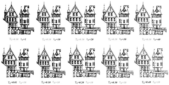 The critical point extraction from building façades using dual-threshold criterion. It can be seen that the results are slightly different based on the composition of and .