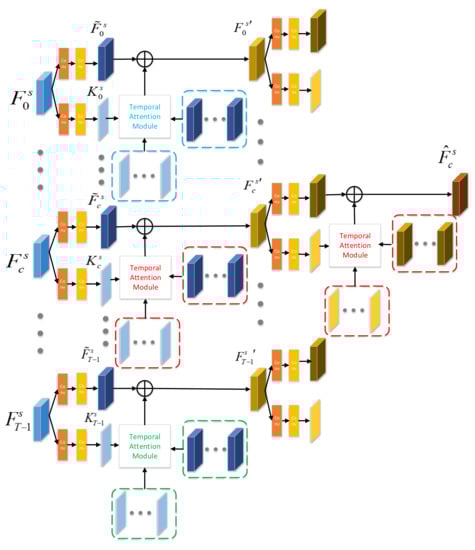 As shown in Figure 3, after obtaining the long-range temporal context information via temporal attention module, we add the temporal attention feature and feature to enhance the representation of image . The aggregation feature is given by: