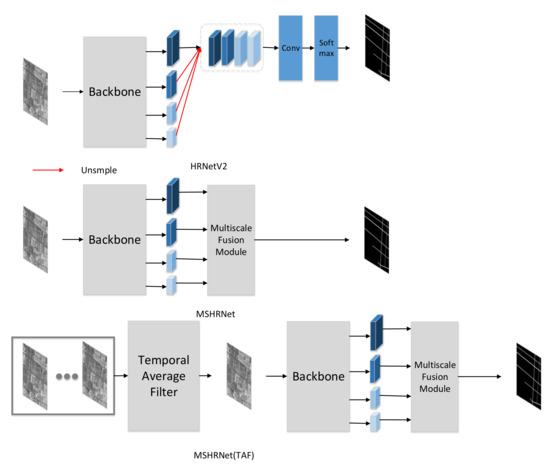 We choose the HRNetV2 [33] as benchmark to study the performance of multiscale fusion module (MSFM). As shown in Figure 7, we modify the HRNet with multiscale fusion module to obtain the network MSHRNet. Next, we adopt the image after temporal average filter as input of MSMTHRNet to study the performance of temporal consistency enhancement module (TCEM). As shown in Figure 7, we denoted this method as MSMTHRNet(TAF).