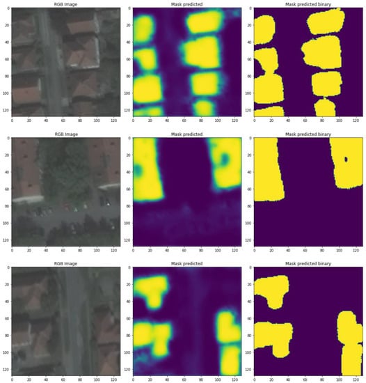 After we applied the model over the input data, the result was a raster that represents probability maps with a range of (0, 1), with 0 as the lowest probability of the building’s existence, and with 1 as the highest probability of the building’s existence. The next step is to define the probability value, based on which buildings will be identified. The probability value used in this work is 0.5.
