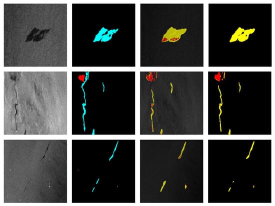 - Yu, X.; Zhang, H.; Luo, C.; Qi, H.; Ren, P. Oil spill segmentation via adversarial $ f $-divergence learning. IEEE Trans. Geosci. Remote. Sens. 2018, 56, 4973–4988. [Google Scholar] [CrossRef]