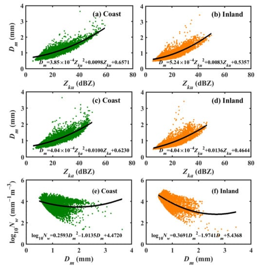 3.3. Dm−ZKu/ZKa and Dm−Nw Relations