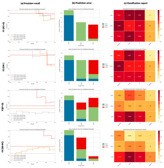 3.4. AutoML Precision–Recall, Prediction Error, and Classification Report of CM Recognition