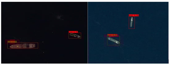 In order to fully verify the detection performance of the algorithm in this paper under the conditions of multiple scales and different ship orientations, we used network satellite maps to collect nearly 2000 ocean remote sensing images as experimental data sets. The data set contains ocean remote sensing images from different perspectives and locations. The set image sizes range from 300 × 300 to 1500 × 900 (90% of which are larger than 1000 × 600), while the resolutions are between 3 and 0.5 m. There are a certain number of ships on each picture. Figure 8 shows some examples of the data set.