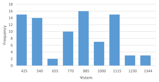 Distribution of Ψstem (kPa) for all the samples (n = 85). The dataset is not normally distributed.