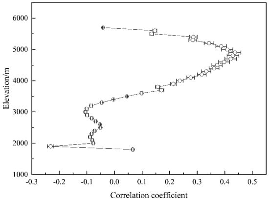 Correlation coefficient between snow cover extent and runoff at different elevations.