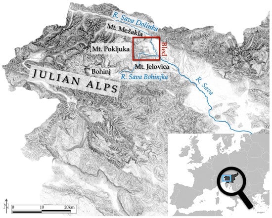 - Ogorelec, B. Geological Setting of the Surroundings of Lakes Bled and Bohnij. Geology 1978, 21, 93–164. [Google Scholar]