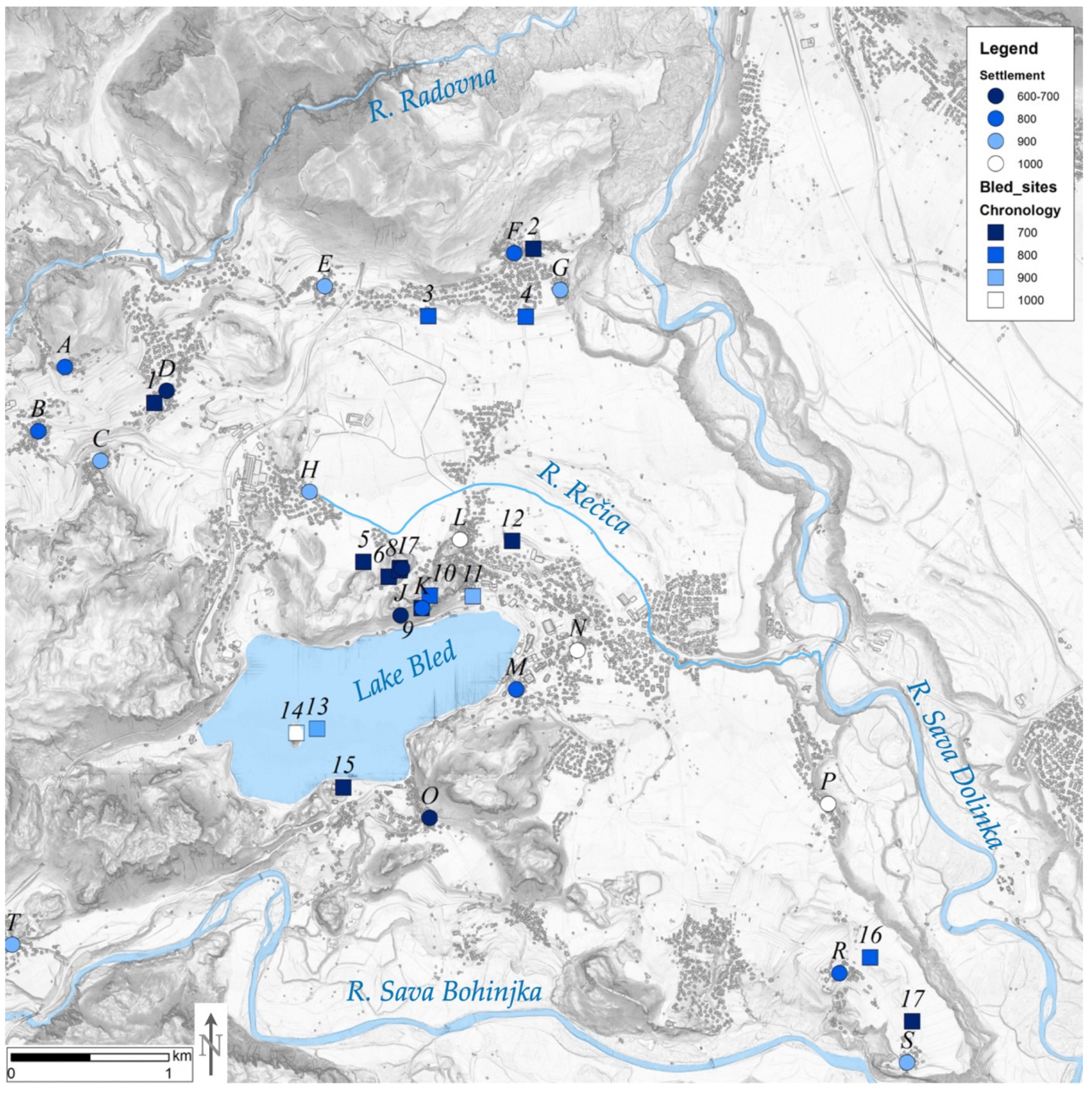 Early medieval settlements in Bled microregion; ID refers to Figure 1 (source []).
