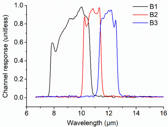 The channel response functions of the prototype of TIS are shown in Figure 3. B1 is a wide band, while B2 and B3 are narrower.