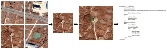 At present, the known public datasets do not contain oil wells, such that public datasets cannot support our study. For this reason, we used Google Earth images with the spatial resolution of 0.26 m to make our own dataset. Google Earth images are multiple data source images which integrate various remote sensing data, mainly including two categories: satellite and aerial data. Google Earth images have the advantages of wide coverage, multilevel products, and high resolution. To obtain high-quality training data as much as possible, we operated as follows (Figure 6):