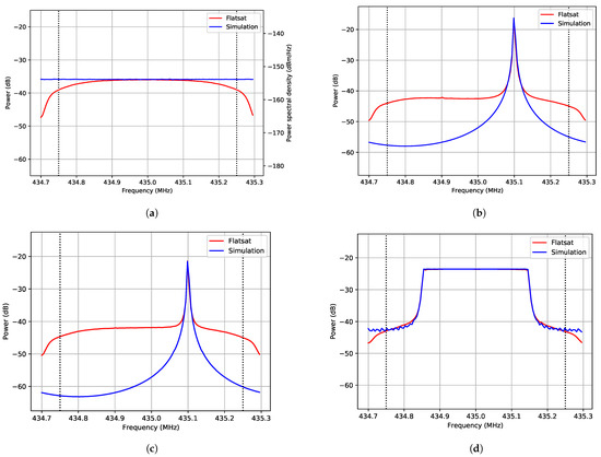 To verify the implementation of the proposed estimator, it was first tested on a set of simulated signals describing different possible interference scenarios using the same configuration. The same scenarios were then tested on the TOTEM SDR in the flatsat setup, generating the signals with another SDR to verify the hardware.