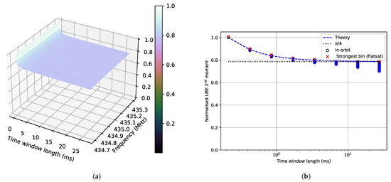 The measurement duration should be long enough to find stationarity, but short enough not to measure the spatial variability due to the satellite’s movement. The duration was five seconds as a trade-off. This interval corresponds to a movement of a 0.3° angle from nadir (center of Earth). The time between measurements is one minute, which defines the spatial resolution. To resolve the 3° beamwidth (rounding up) used by type A space-tracking radars, a corresponding spatial sampling is performed. Thus, measurements were one minute apart.