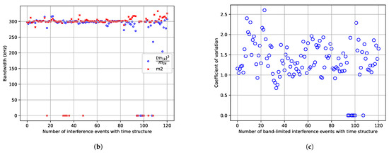 The time behaviour measured shows high variability within five seconds. Average power is a useful measure to design a system that works for the average interference environment, but it does not take the temporal structure and dispersion of the interference into account. The CV can be helpful to estimate how much time variability the signal has. The CV is a measure of dispersion. So, if a band has significant power above the general noise floor and the CV is high, the peak power is much higher than the average power. The high CV observed over Europe, the Arctic, and the coastlines of North America indicates a much larger spread in amplitude than for AWGN. A communication system designed to cope with AWGN at the noise levels given by a heatmap fails under these circumstances. The stationarity measurements and the CV show that the interference is not AWGN over populated areas.