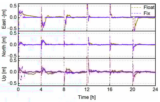 3.2. Ambiguity-Float and Fixed PPP Results