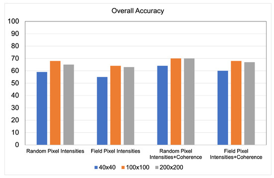 - Random-Pixel Sampling: The pixel samples are randomly assigned to the training and validation sets without any spatial context constraint. The outcome is that any arbitrary field is allowed to have part of its pixels in the training set and part in the validation set. This is expected to lead to a positive bias in accuracy due to eventual overfitting, which occurs when the intra-polygon variability is lower than the variability between polygons of the same class. The risk in this random sampling approach is therefore that the algorithm learns the behavior of the individual fields rather than modeling their common statistical traits.