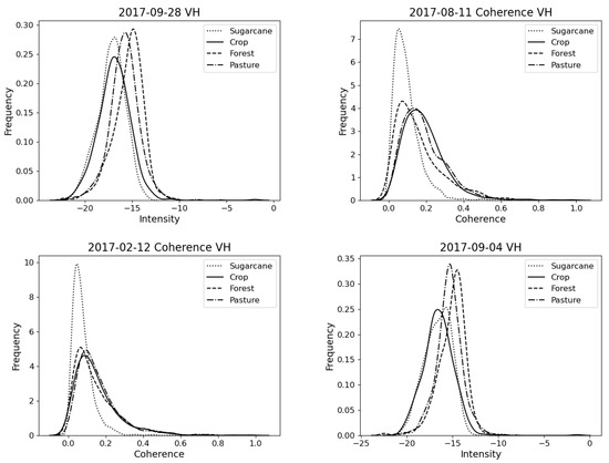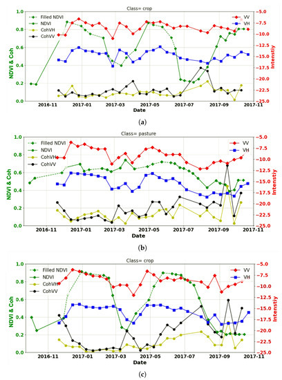 - Mestre-Quereda, A.; Lopez-Sanchez, J.M.; Vicente-Guijalba, F.; Jacob, A.W.; Engdahl, M.E. Time Series of Sentinel-1 Interferometric Coherence and Backscatter for Crop-Type Mapping. IEEE J. Sel. Top. Appl. Earth Obs. Remote Sens. 2020, 13, 4070–4084. [Google Scholar] [CrossRef]