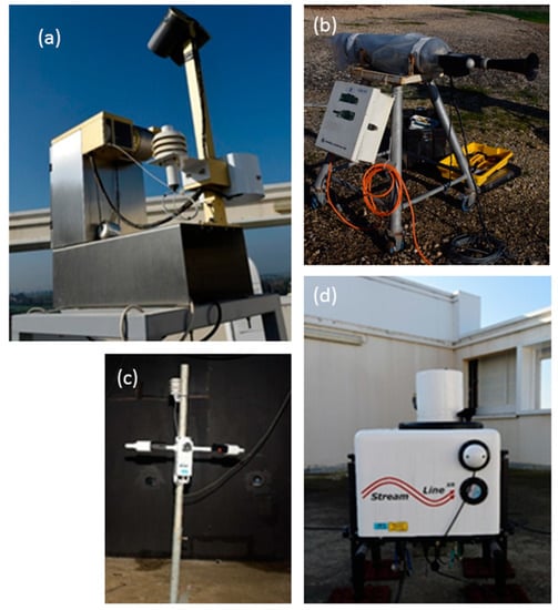 Several of the instruments were located in an open area on a hill that is 40 m above sea level, while others were on a nearby tall building roof at a similar height. The in situ meteorological measurements and remote sensing equipment are presented in Figure 4.