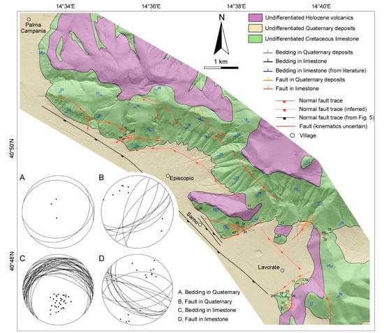 - Cinque, A.; Patacca, E.; Scandone, P.; Tozzi, M. Quaternary kinematic evolution of the Southern Apennines. Relationships between surface geological features and deep lithospheric structures. Ann. Geophys. 1993, 36, 249–259. [Google Scholar]