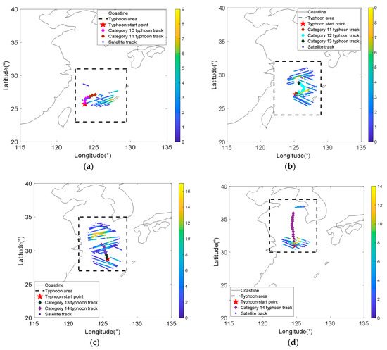 As one of the most serious natural disasters in the world, typhoons are a top priority for scientific research because of their suddenness and destructive power, which bring huge economic losses to human society. Remote sensing technology provides a huge development space for typhoon monitoring and prediction. All microwave remote sensing instruments are struggling to provide reliable high wind speed measurements above 25 m/s. However, few studies have been obtained up to now [1,2,3,4,5]. The Global Navigation Satellite System reflection (GNSS-R) technology uses satellite signals reflected from the Earth’s surface to obtain information of surface characteristics such as sea surface wind speed, so it can be provided with all-weather detection capability [6,7,8,9,10,11]. The main purpose of the Cyclone Global Navigation Satellite System (CYGNSS), launched by the United States in 2016, is to monitor tropical cyclones. It measures sea surface winds in and near the eyewalls of tropical cyclones, typhoons, and hurricanes frequently throughout their life cycle and the data collected can be used to invert wind speeds [12].