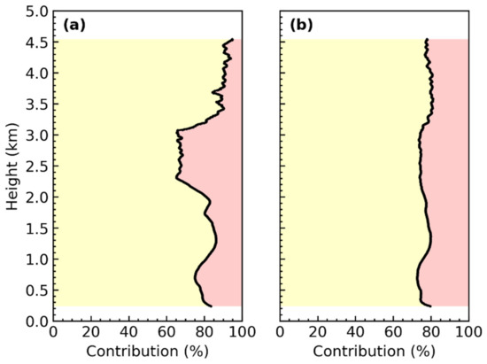 The haze episode from 24 September to 3 October was selected to investigate the vertical distribution of dust and urban haze mass concentrations in the lower troposphere. Applying the method in Section 3.1, the time–height distribution of dust and urban haze mass concentrations were shown in Figure 4.