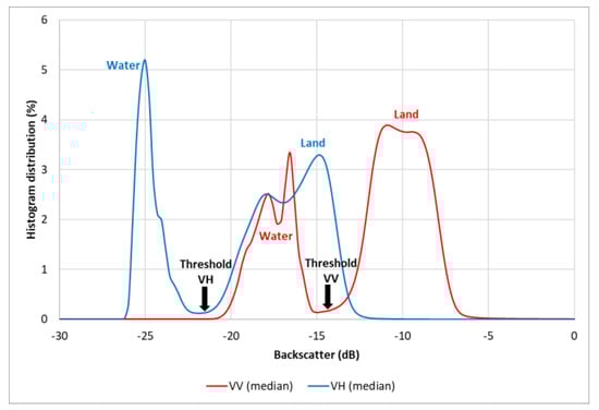 - Mahoney, C.; Merchant, M.; Boychuk, L.; Hopkinson, C.; Brisco, B. Automated SAR Image Thresholds for Water Mask Production in Alberta’s Boreal Region. Remote Sens. 2020, 12, 2223. [Google Scholar] [CrossRef]