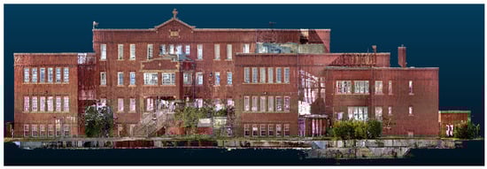 The Old Sun Community College, formerly the Old Sun Residential School, was operated by the Anglican Church as an Indian Residential School from 1929–1971. The building has three floors and a large basement, totalling approximately 1200 square meters. This point cloud dataset was collected in August 2020. The terrestrial laser scan of the Signal House took 9 days, with a total of 300 scans. The captured point cloud is presented in Figure 10.