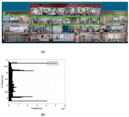 The datasets used to test the developed methods were down sampled to 5 cm. This was done to make the processing time tractable in an environment such as MATLAB, while preserving the level of detail required to accurately determine the location of the floors and ceilings. The impact of the down sampling on the results will be presented in Section 5.