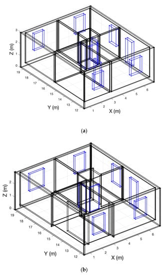 Signal House: (a) Truth model; (b) Calculated model. Walls in black, windows and doors in blue.