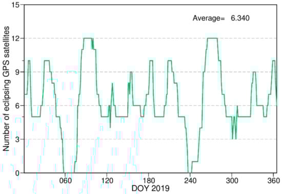 Daily number of GPS satellites in eclipse seasons in 2019.