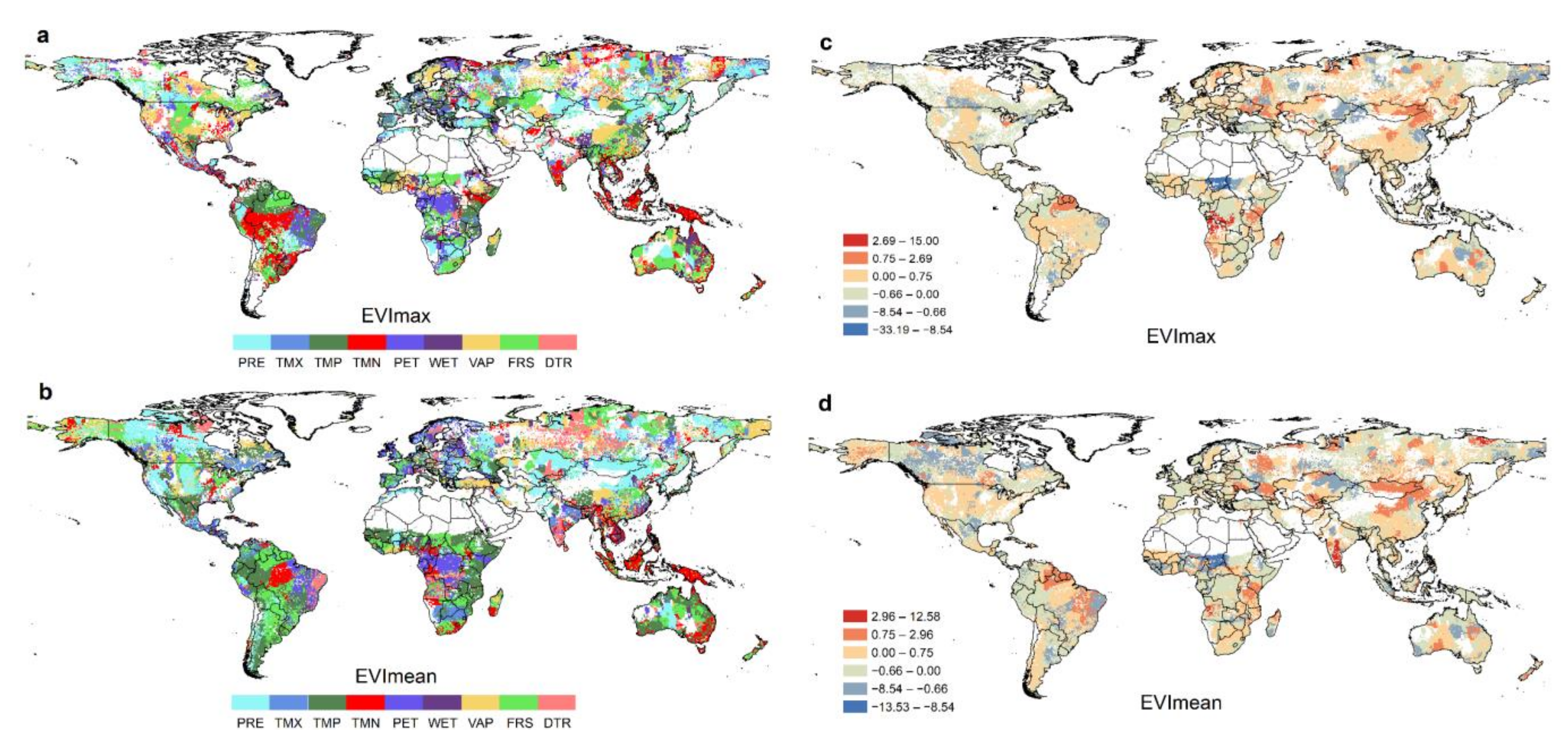 | EVImax | MODIS Terra-C6 | 0.05° | 0.0023 yr−1 **** | - | - | ||