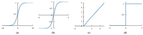 Convolution operation and pooling operation in convolution neural networks are linear operations, which only can solve linear problems. However, most of the practical problems are nonlinear. If just stacking the convolution layer and the pooling layer directly, the neural network will only be suitable for the linear problem. This is why CNN needs to add an activation function layer whose role is to inject nonlinear factors into the neural network so that the network can fit all kinds of curves and be able to handle practical problems. The common activation functions are as follows: logistic function (also known as Sigmoid function) [52], hyperbolic tangent function (Tanh) [53], and rectified linear units (ReLU) [54]. The expressions of the three functions are as follows: