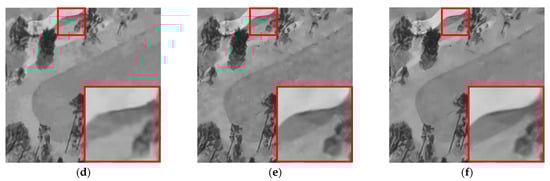 As shown in Table 4, the proposed method obtained the best denoising results compared to the other methods in all the different noisy levels. We found that the proposed method achieved the best denoising results compared to other methods for all the different noisy levels. Figure 8 and Figure 9 show the despeckled results affected by speckle noise level of L = 4. It can be observed that the despeckled results were consistent with the visual results by comparing the zoomed-in patches shown at the lower right corner of these images.