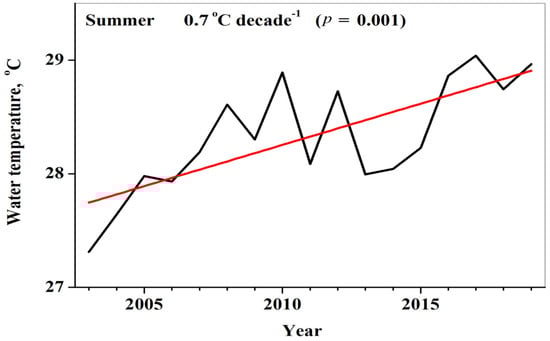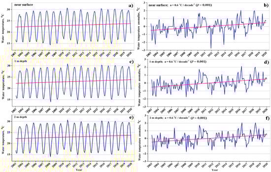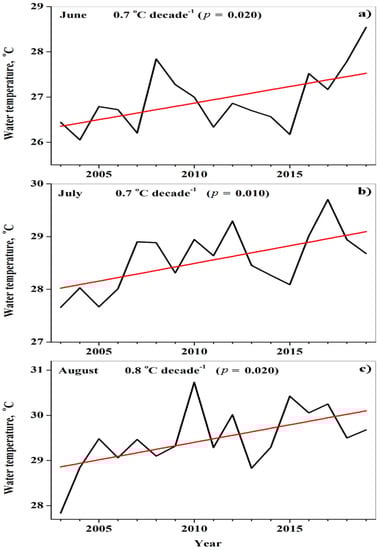 3.2. Long-Term Water Temperature Trends Based on In-Situ Measurements for All Months