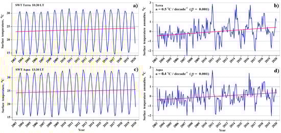 - LP DAAC Land Processes Distributed Active Archive Center: MYD11A1.006 MODIS/Aqua Land Surface Temperature/Emissivity Daily L3 Global 1 km V006. Available online: https://e4ftl01.cr.usgs.gov/MOLA/MYD11A1.061/ (accessed on 22 August 2021).