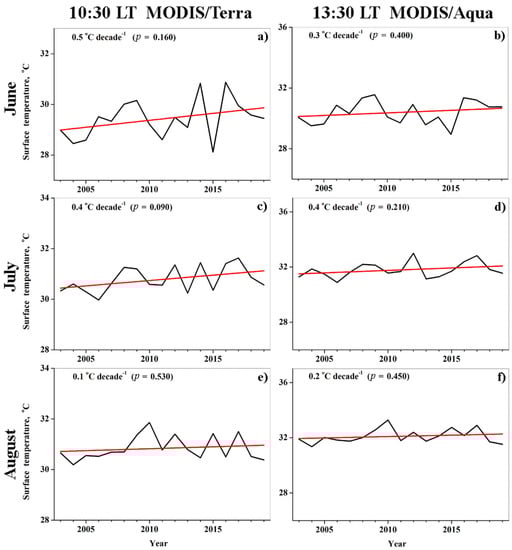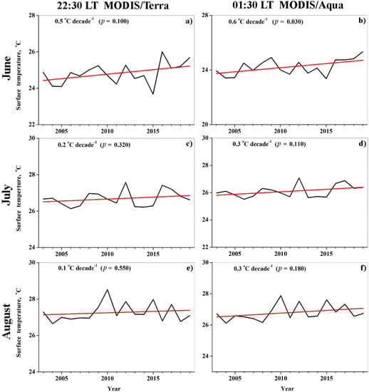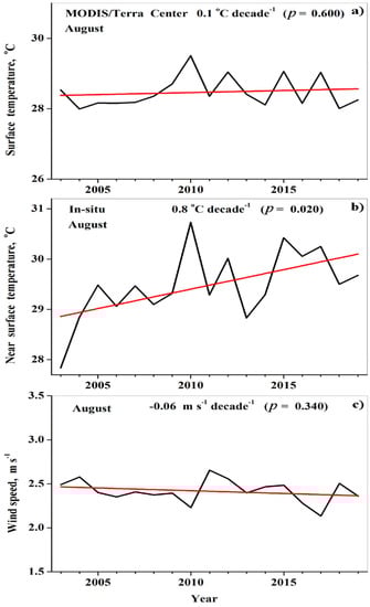 3.4. In-Situ Based Trends in Near-Surface Water Temperature in the Summer Months
